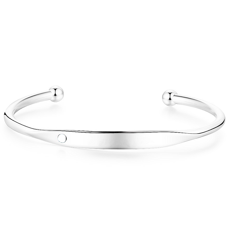 Beautiful stainless steel bangle bracelet. A classic, all-purpose bracelet that can be customized with your own engravings and the birthstone of your choice. Will not tarnish, and very resistant to scratches. A perfect gift for anyone!