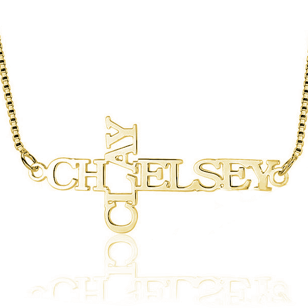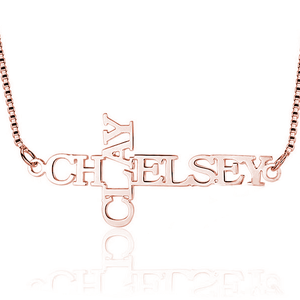 Be radiant with this sublime necklace first name cross. Pendant with 2 crossed first names carved cross. For a perfect eternal duo! Whether for a couple, for a friendship or for the name of your children, this necklace is unique and personal!