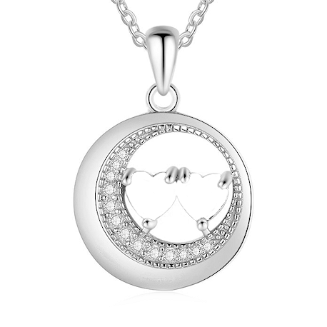Pendentif cercle serti de zircons clairs avec deux superbes pierres en forme de coeur personnalisable avec 2 pierres de naissance ainsi 2 prénoms ou mots. Pour garder près de votre coeur un moment ou des gens importants pour vous. Choisissez vos gravures (ou pas) pour créer un bijou personnel et unique qui touchera le coeur de celle qui la recevra. Cadeau parfait à offrir à l'être aimé et à s'offrir soi-même.