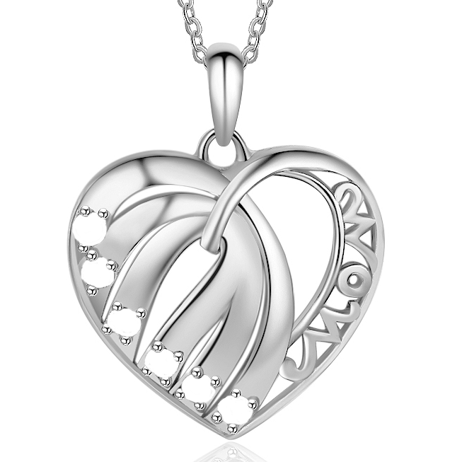 Pendentif coeur MOM personnalisable avec 6 pierres de naissance, 6 prénoms. Pour garder près de votre coeur les gens importants pour vous. Choisissez vos gravures (ou pas) pour créer un bijou personnel et unique qui touchera le coeur de celle qui la recevra. Cadeau parfait à offrir à maman, grand-maman ou à soi-même.